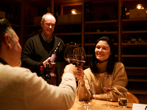 The experience continues in the exclusive Hugo Gramp Room Cellar with the Legends of the Vines Icon Tasting, a curated flight showcasing the most distinguished and rare wines from both brands. This premium tasting is elevated by a thoughtfully prepared small bites plate, curated by our Executive Chef to complement and enhance each pour.